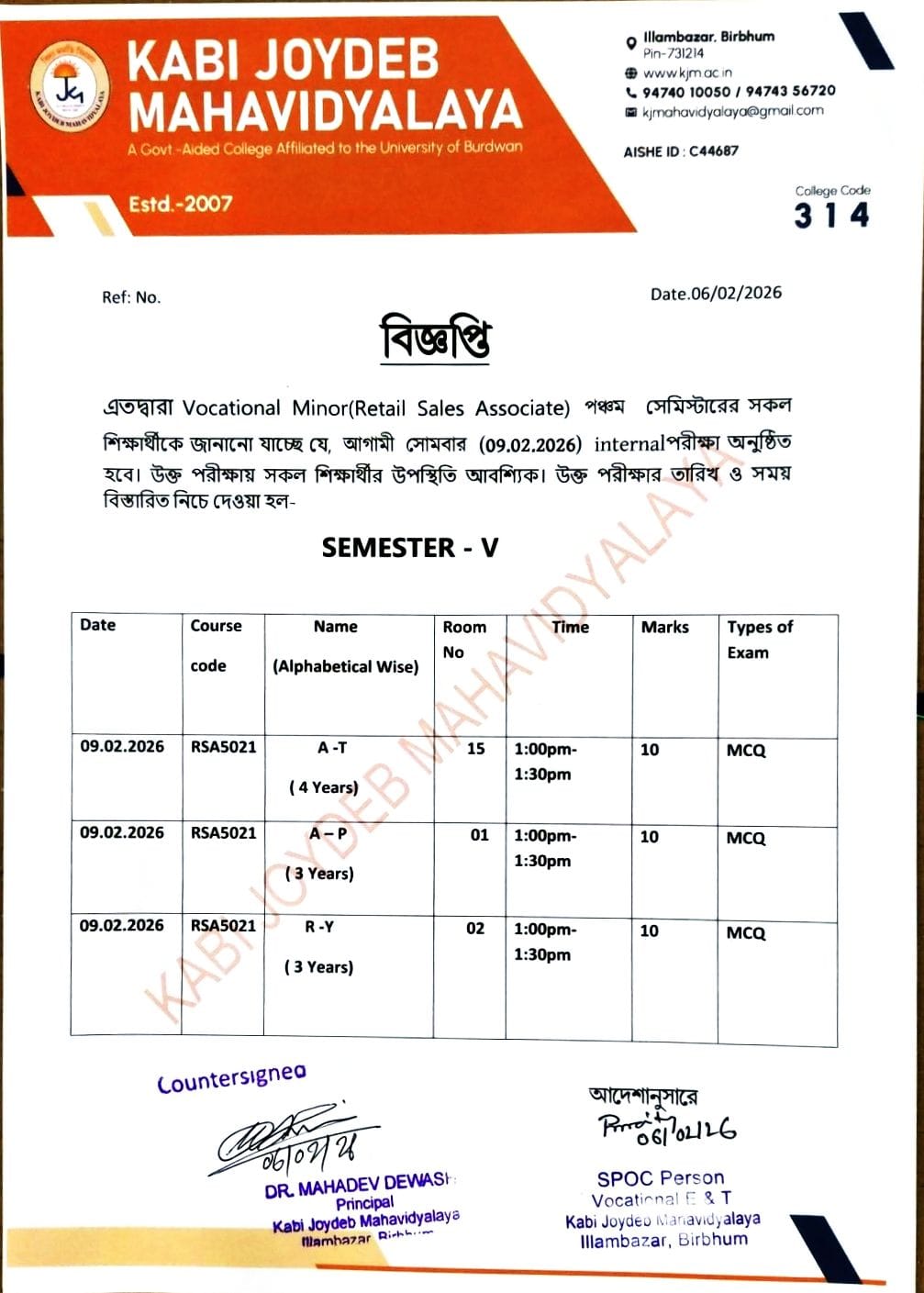 Education is one of the most respected and accepted modes in human civilization for the fulfillment of human ambition of continuous and sustained betterment of the self and the society. lt harnesses the socializing skills of human being and helps one to perceive those feelings that make one learn from the past, deal with the present and prepare for the future. The establishment of Kabi Joydeb Mahavidyalaya in 2007 has contributed significantly to the Social and cultural change that has come to affect the area in a positive way in the last one decade.