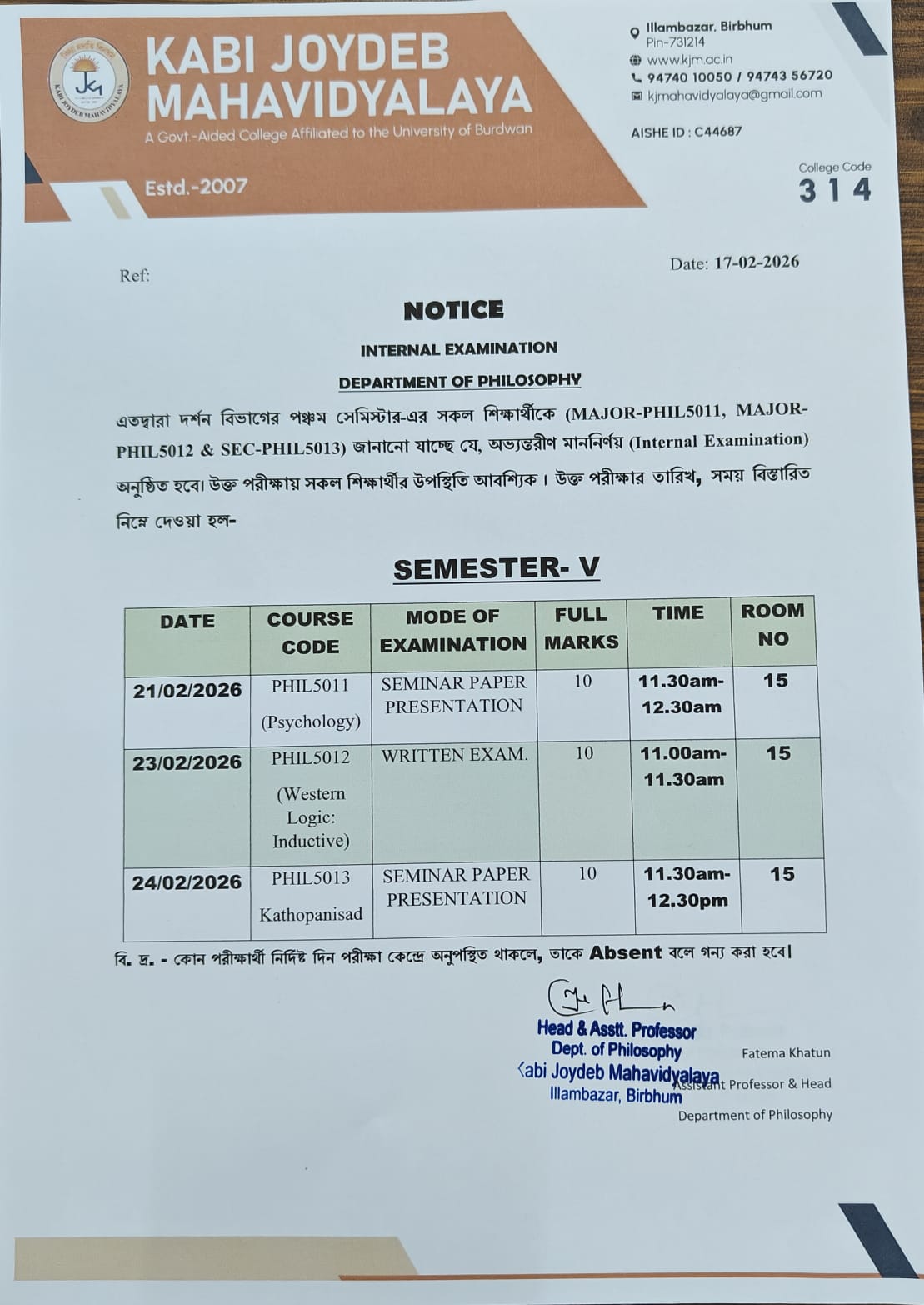 Kabi Joydeb Mahavidyalaya was established in the year 1999, with the aim of providing the scope for higher education to the aspiring students of the remote areas of Sitalkuchi and Sitai Community Development Blocks of the District of Cooch Behar.