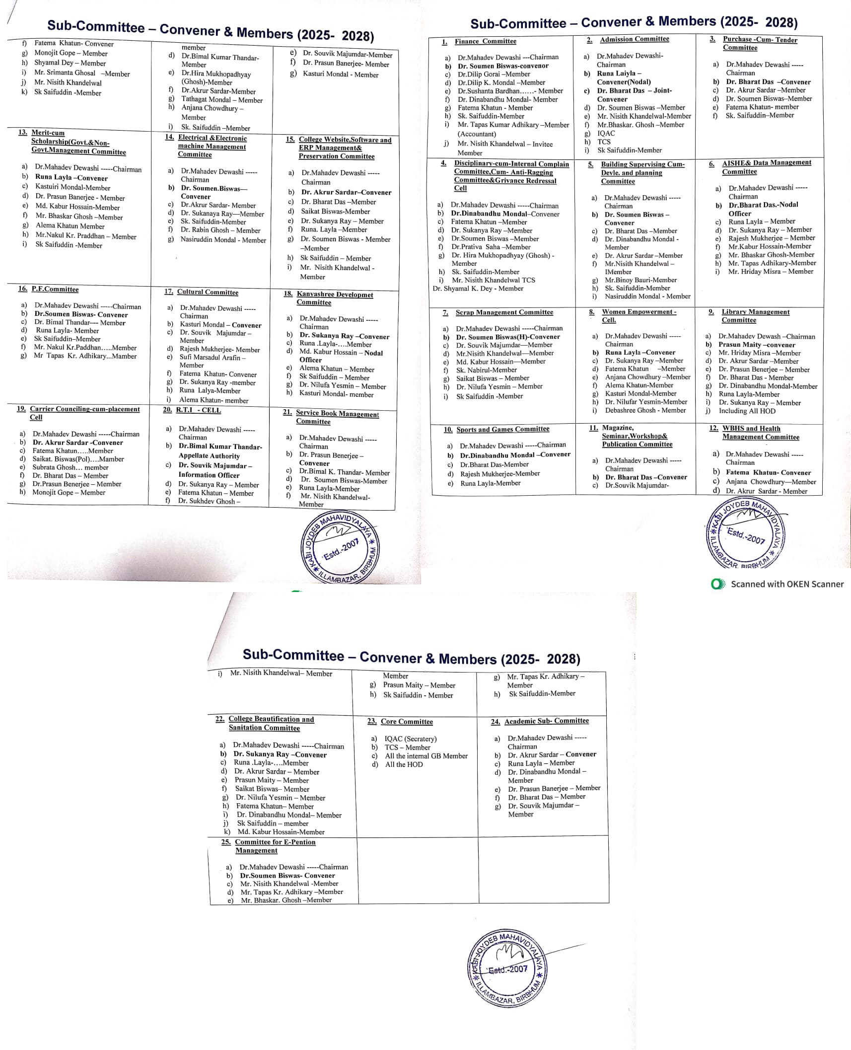 sub committee -convener & members 2022-2025 view